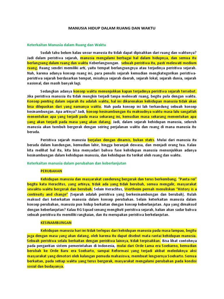 Selain ruang, konsep penting dalam sejarah itu adalah waktu. Kali ini saya akan menyajikan materi untuk kd 3.1 yakni tentang manusia hidup dalam ruang dan waktu, materi ini masih dalam ruang lingkup. Detik, menit, jam, dsb makna konotatif : Ada masa lalu, masa sekarang, dan. Ruang dan waktu merupakan panggung kehidupan manusia. Manusia hidup dan berkreativitas dalam ruang dan waktu. Manusia, ruang, dan waktu adalah 3 unsur yang tidak bisa dipisahkan. Sebagai objek sekaligus subjek sejarah, manusia pun tak akan terlepas dari ruang juga waktu dalam menjalani kehidupannya sebab semua aktifitasnya berlangsung di dalam ruang dan waktu tersebut. More sejarah peminatan interactive worksheets. Manusia memiliki peranan penting dalam sejarah. Silakan klik konsep manusia dalam ruang dan waktu sejarah kelas 10 sma untuk melihat artikel selengkapnya. Sejarah pada dasarnya mempelajari kejadian manusia di masa lalu. Sejarah, manusia adalah pelaku peristiwa sejarah.